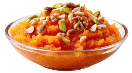 Bowl of creamy herb soup on transparent background for culinary designs