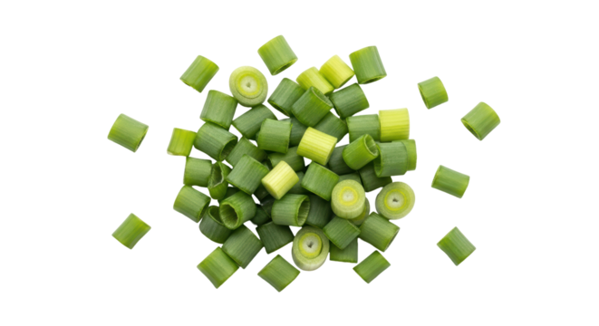 Isolated chopped green onions, fresh cut scallions for cooking, healthy garnish ingredient
