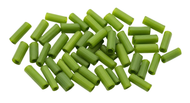 Isolated heap of chopped fresh chives for ingredient in culinary food preparation recipes