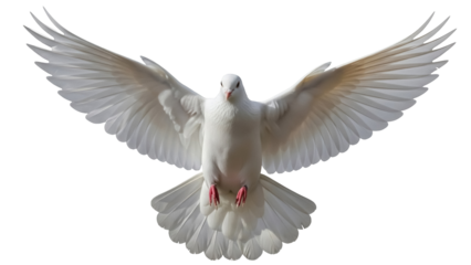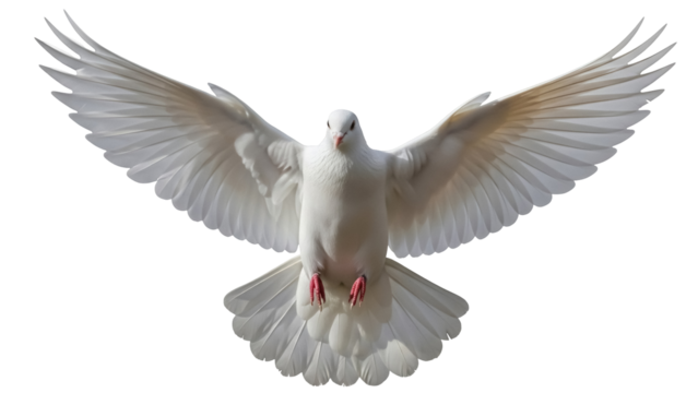 Dove PNG isolated on transparent background, white bird with open wings flying, symbol of peace and freedom, religious and spiritual concept