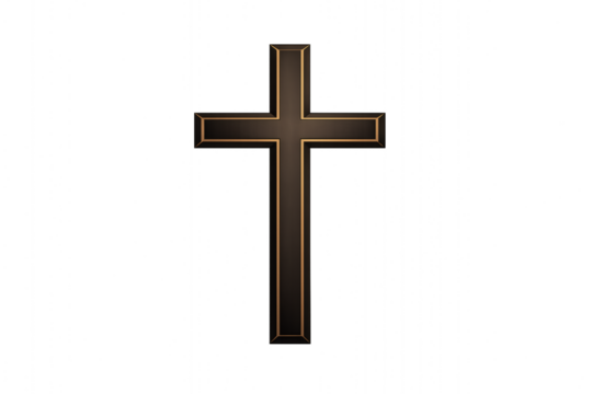 Elegant dark cross with subtle gold trim against a transparent background