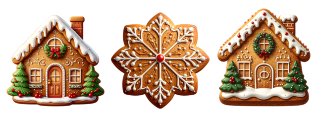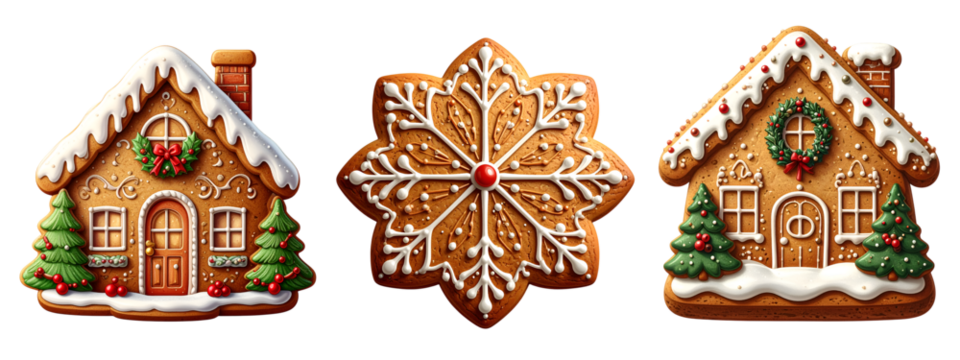 Png set gingerbread cookies made at home, photographed on a transparent background showcasing homemade baking for christmas event 2025, isolated on white background