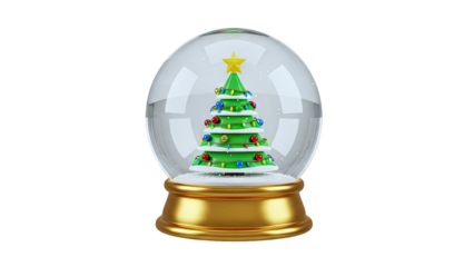 • A Christmas snow globe with a winter scene inside, isolated on white background in HD