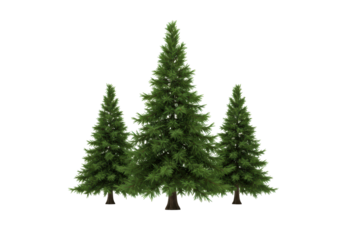 Isolated three evergreen trees, pine or fir, forest decoration, Christmas tree shape, nature
