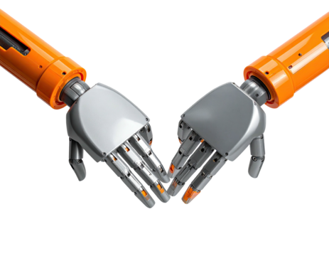 Robot hands touch, forming a V shape