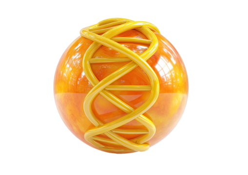 Yellow D N A helix structure with smoky wisps against background isolated on a transparent background