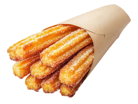 Delicious Churros Sprinkled With Sugar isolated on a transparent background