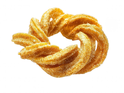 Pile of golden, sugar-coated churros isolated on a transparent background.