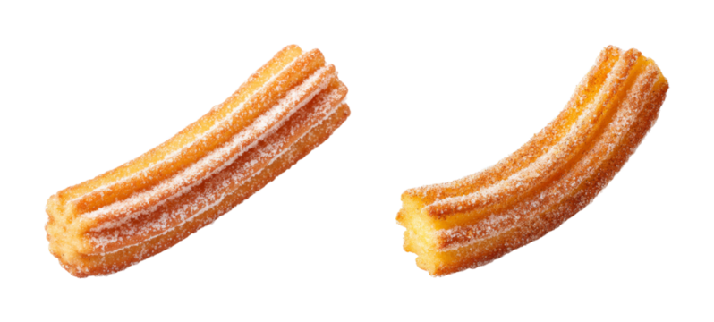 Delicious golden churros dusted with sugar and cinnamon, perfect for cafe menus or sweet treat promotions, PNG set with transparent background