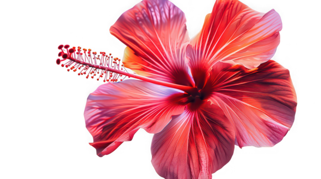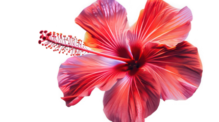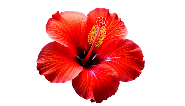 Vibrant Coral Red Hibiscus Flower with Yellow Stamen, isolated on a transparent background,_.png