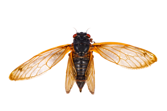 Isolated cicada insect with expanded wings
