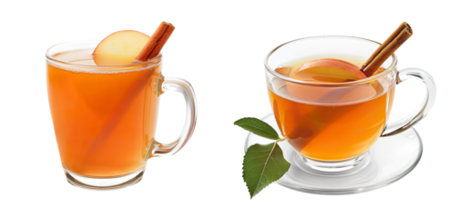 Christmas apple cider with cinnamon stick in a cup PNG set, cutout isolated on transparent background. Festive hot winter holiday season drink