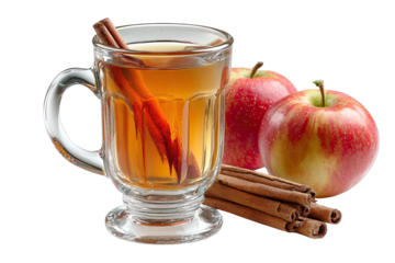 apple cider a realistic photo of an apple cider with cinnamon and apples on a transparent background