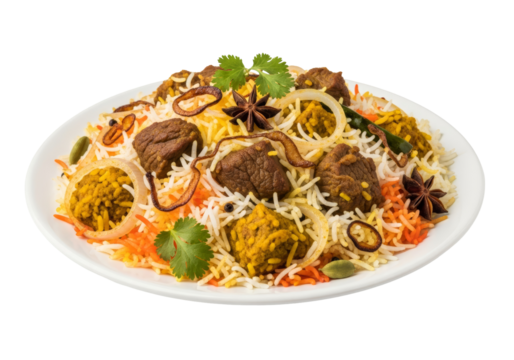 Bowl of noodles with peanuts and cilantro garnish isolated on a transparent background pasta food