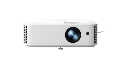White Modern Projector with Large Lens on White Background for Home Theater or Business Presentations