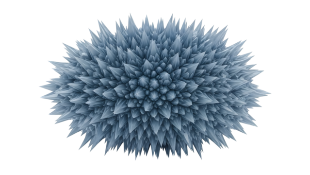 Blue spiky spherical with sharp protrusions isolated on a transparent background sphere