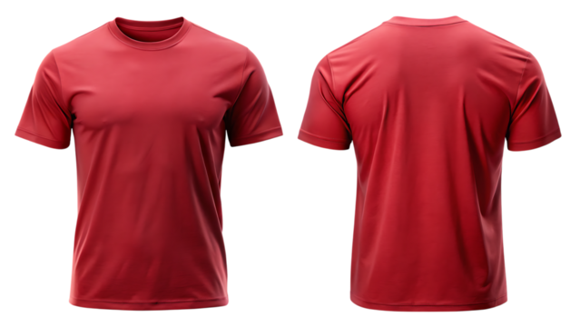 Red short sleeve t shirts front and back isolated on a transparent background red t shirts red clothing