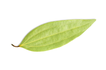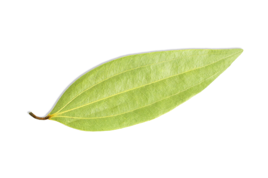 Single fresh cinnamomum camphora tree leaf isolated on transparent or white background. PNG