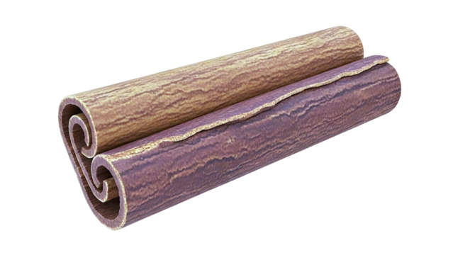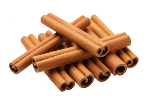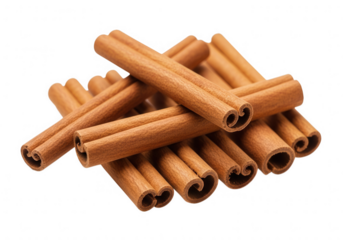 Ground cinnamon and cinnamon sticks in a white bowl isolated on transparent background