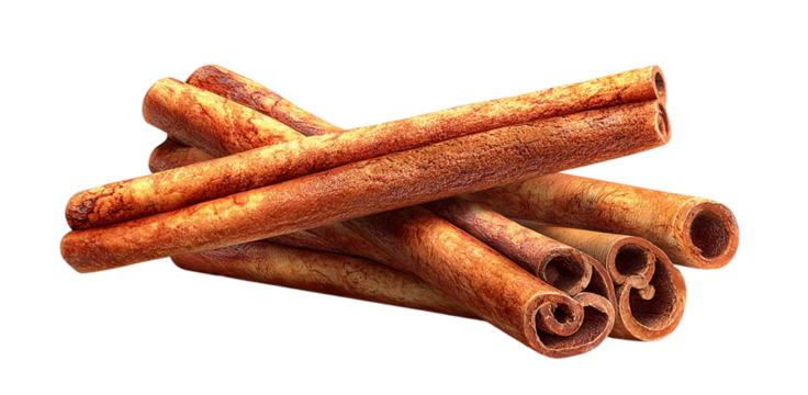Pile of cinnamon sticks isolated on transparent background for cooking and baking