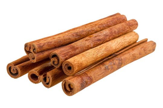 Three cinnamon sticks isolated on transparent background
