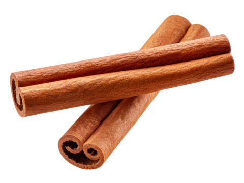 Two cinnamon sticks crossing on transparent background