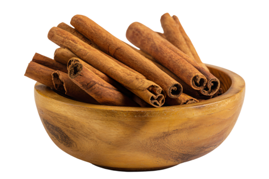 3D Render a wooden bowl filled with cinnamon sticks