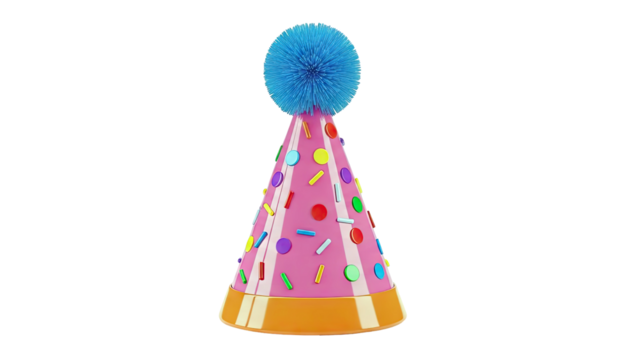 Pink Party Hat with Blue Pom-Pom and Colorful Sprinkles