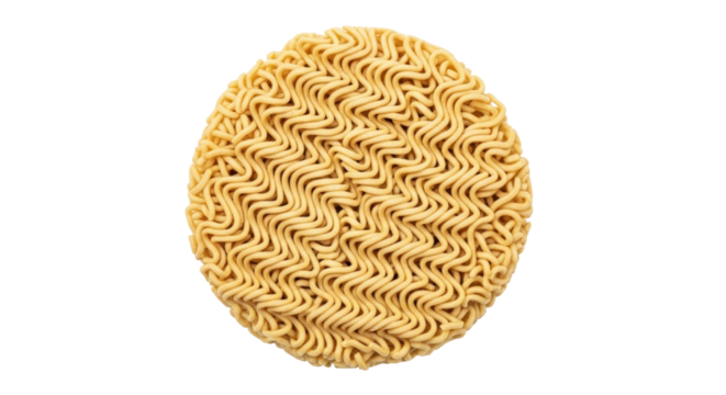 Isolated uncooked ramen noodles block, fast and cheap Asian comfort food ingredient