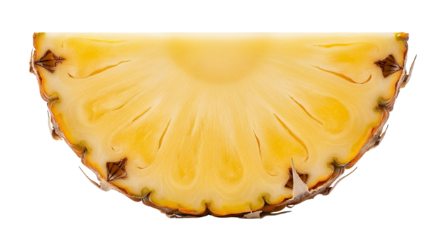 A pineapple cut into half circles, white background isolated