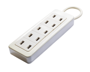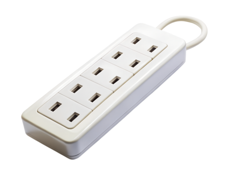 White power strip with multiple sockets, isolated on transparent background