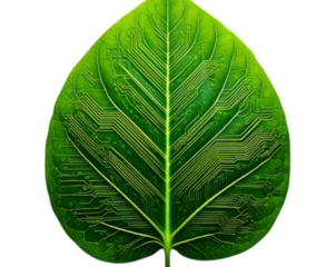 Leaf with Circuit Patterns Symbolizing Nature and Technology Fusion