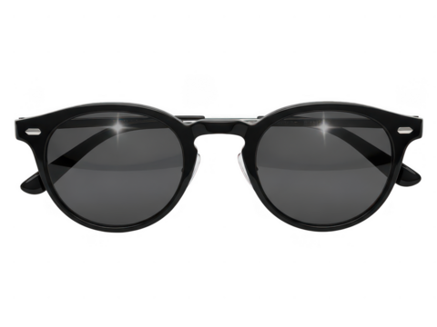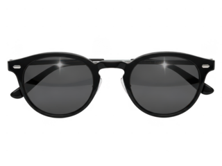 Black round sunglasses isolated on transparent background
