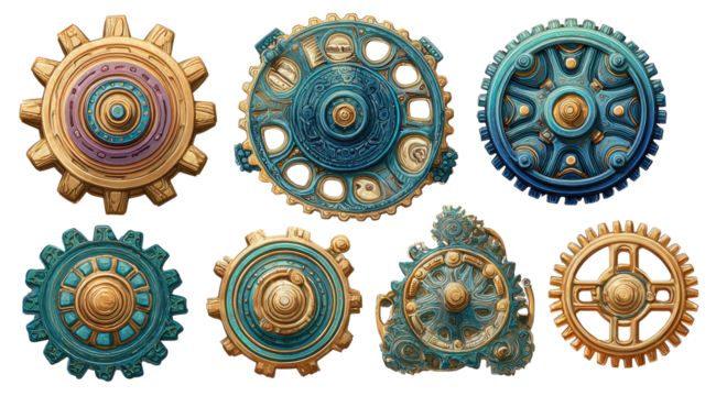 Art deco golden border frame with geometric motifs on transparent backdrop