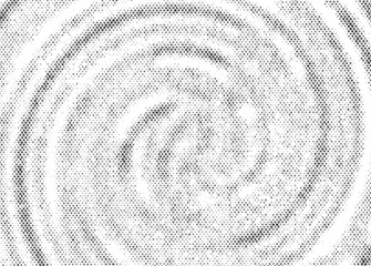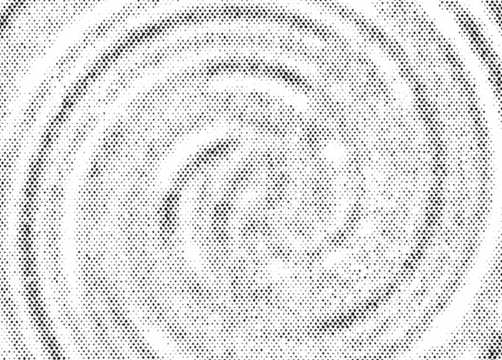 Extreme macro of printed black halftone dots forming concentric spiral rings like a vortex or fingerprint. Isolated PNG with transparent background for retro, grunge, and overlay design.