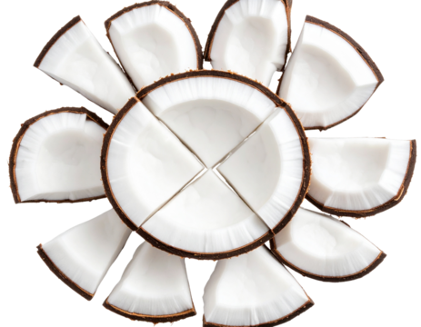 “Top View of Coconut Slices Arranged in Circular Pattern, PNG Style”