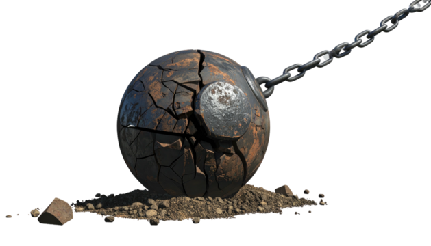 Worn out and torn softball. PNG