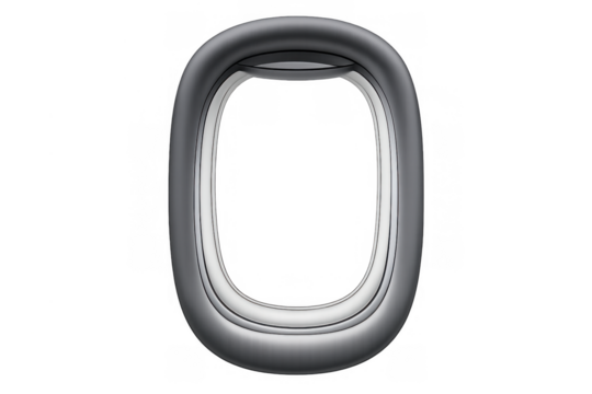 Airplane window frame with a transparent background. Ideal as a mockup for overlaying travel, vacation, or journey images