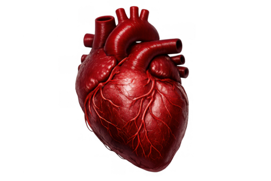 Human heart organ displaying realistic anatomy, cardiology, and health concept in a detailed 3d render