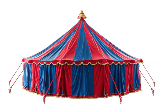 Colorful Circus Tent with Red and Blue Stripes in a Retro Style Design
