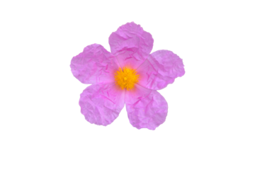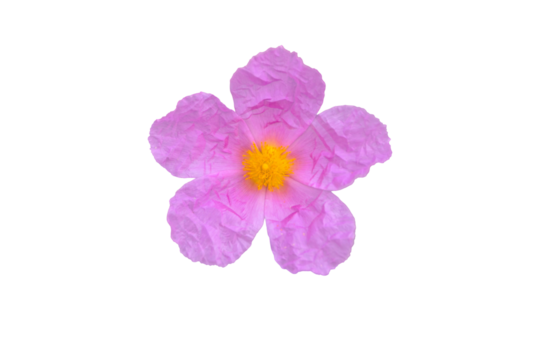 Cistus albidus or grey-leaved cistus pink flower with crinkled petals and yellow stamens isolated transparent png