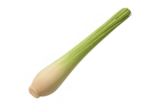 Fresh lemongrass stalk, an aromatic culinary herb showing vibrant green and pale base, transparent background