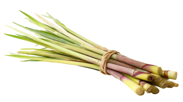 Lemongrass isolated on transparent background, fresh green herb with distinct flavor, aromatic plant used as culinary ingredient, organic grass stems showcasing natural citrus aroma