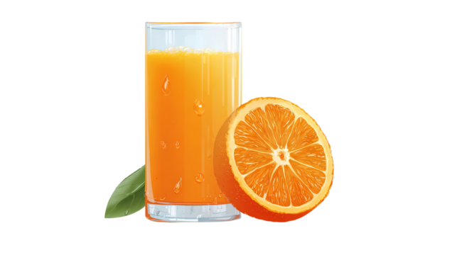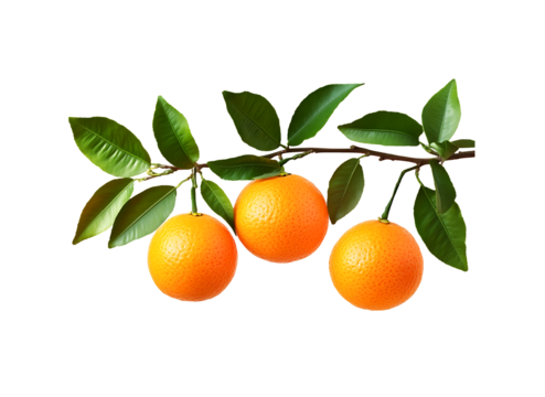 Set of branches with ripe delicious oranges isolated on a white transparent background