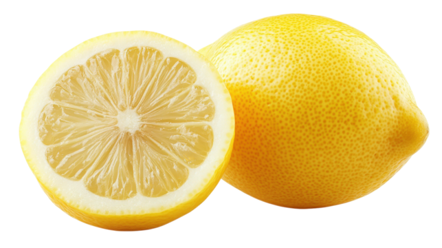 Bright Lemon Slice on Transparent Background Fresh Citrus Fruit Half Cut