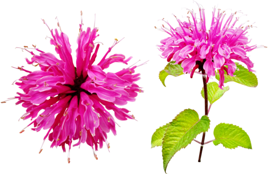 Fresh bergamot fruit, halved to reveal its vibrant interior, accompanied by lush green leaves. Isolated on a transparent background.