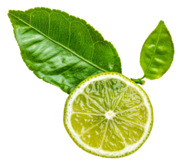 Bergamot kaffir lime leaves herb fresh ingredient isolated on transparent.