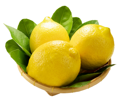 Lemon fruit in wooden basket on white background, Sweet Lemon fruit over white Png File