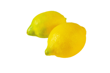 Two whole lemon fruits isolated transparent png. Yellow green citrus fruits.