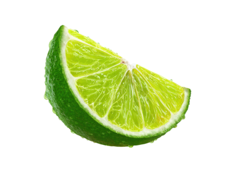 A vibrant lime wedge slice isolated on transparent background